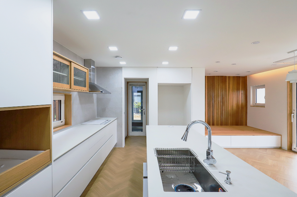 여러 공간들이 서로 보이고 소통되는 집,