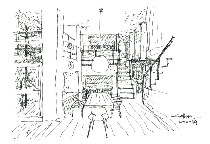 집과 만나는 사람의 정서에 따라 살기 위한 배경이 밝아지기도 하고, 어두워지기도 하고, 좁다가 넓어지기도 하고, 나무로 둘러싸이다가 하늘로 열려있기도 하는 것이다.